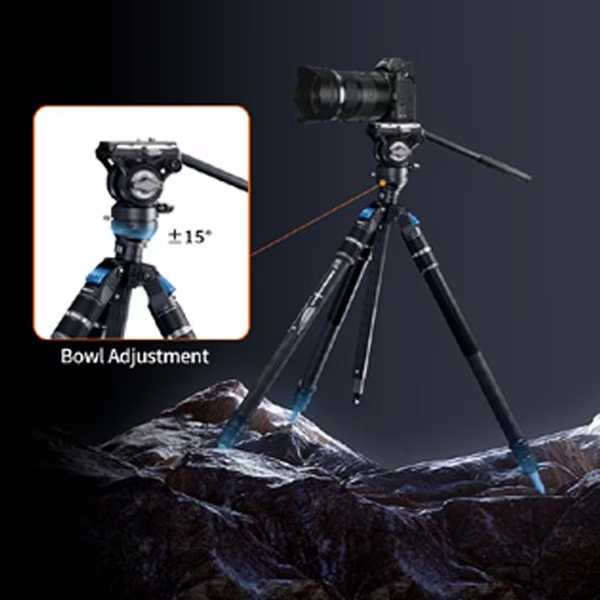 レベリングベース機能をセンターポール部に搭載し、±15の角度調整による柔軟な撮影角度決めが可能。