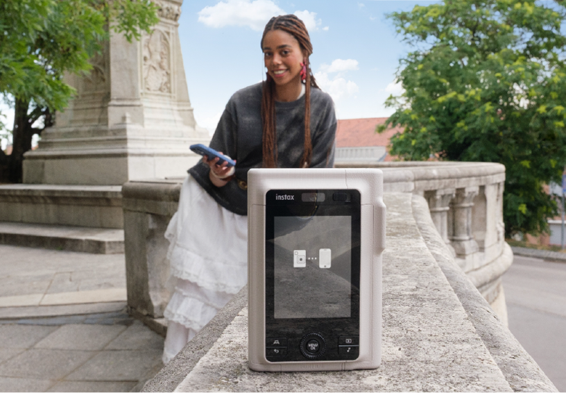・instaxシリーズで初となるセルフィーカメラを搭載。背面モニターを確認しながらの撮影が可能で、かつ広角レンズとなっているため大人数での自撮りも簡単になります。