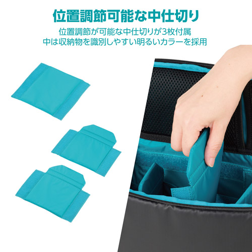 ・位置調節が可能な中仕切りが3枚付属
