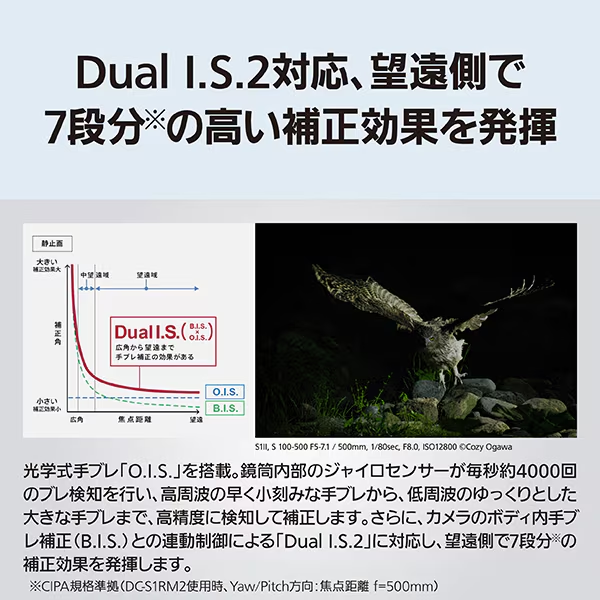 「Dual I.S. 2」 7.0段※4の手ブレ補正と小型軽量の高い機動力が望遠撮影をサポート