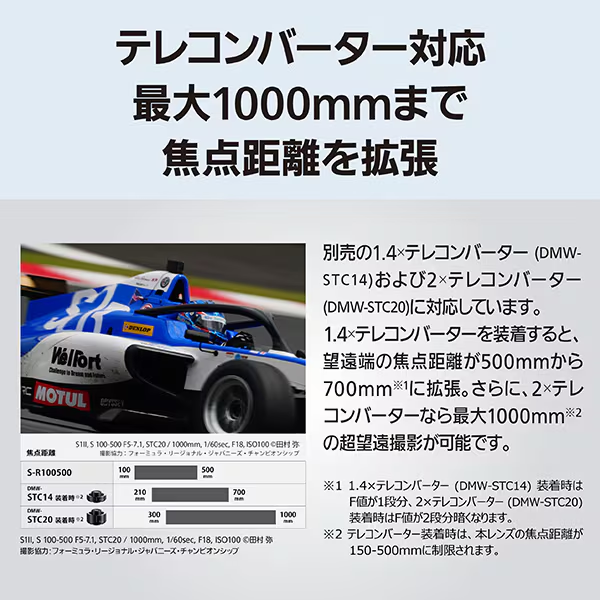 さらに、テレコンバーター※2対応で最大1000mm(DMW-STC20使用時※3)まで焦点距離を拡張することが可能です。
