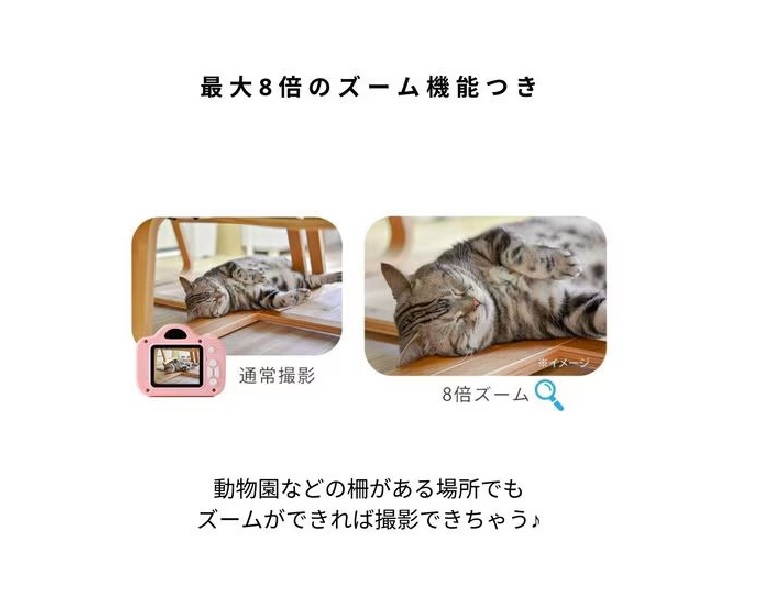 日本企業がプロデュースして、「カメラ機能だけのシンプルなものがいい」「充電がもっと長持ちしてほしい」「もっとカンタンに使えるようにしてほしい」「保証が短い」このようなお客様から多かった声を改善して製造を行いました。ゲーム機能がないところ、長く使えるところ、お子さまがひとりでも使える工夫しているところにご満足を頂いています。