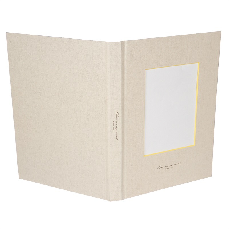 仕様・特徴 | ・外寸:305×217mm ・仕様:表紙のみ/不織布/箱付/透明シート(窓保護用) ・窓サイズ: 165×113(キャビネサイズ) 背幅:6・8・10P-12mm |