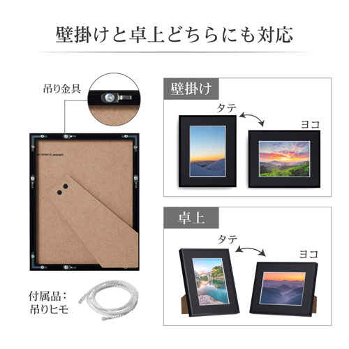 | 仕様・特徴 | フレーム材質:アルミ製 額縁外寸法 約W195×H245×D22mm マット外寸法 約W190×H240×D2mm マット中抜寸法 約W117×H168mm マット仕様 Vカットマット紙・ワイドマット台紙 前面板 ガラス 重量 約520g 吊りヒモ:あり スタンド:あり ※こちらの商品はお取り寄せとなります |