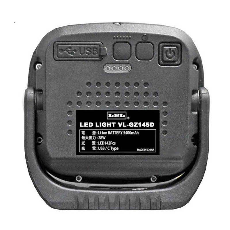 | 仕様・特徴 | ●電源:内蔵リチウムバッテリー5400mAh ●最大出力:約28W ●光源:LED142Pcs ●演色性:約Ra95 ●色温度:約2700~5500K(4段階) ●調光範囲:約25%~100% ●本体寸法:約110X45X110mm ●本体重量:約385g ●付属品:充電コード、カメラシュー、グリップスタンド ※本製品は防水ではありません。 ※急速充電には対応しておりません。 |